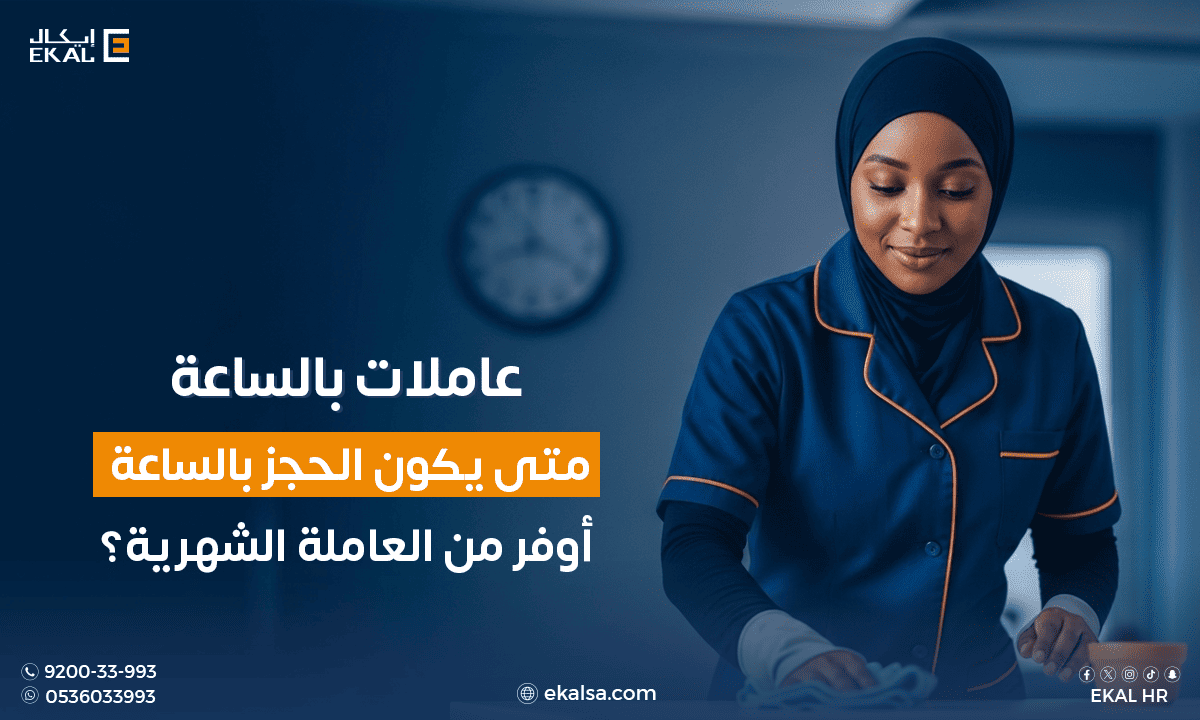 خدمة عاملات بالساعة تعني الاستعانة بعاملة منزلية لفترة محددة حسب احتياجك، دون الحاجة للتعاقد الشهري أو المقيم مع إمكانية تحديد عدد الساعات والمهام المطلوبة.